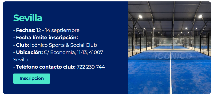 El torneo se disputará en el Icónico Sports & Social, club inaugurado el pasado mes de mayo y que dispone de 15 pistas de pádel —12 de ellas cubiertas y 3 exteriores, una infraestructura de última generación de 4000 m² en la ciudad de Sevilla.